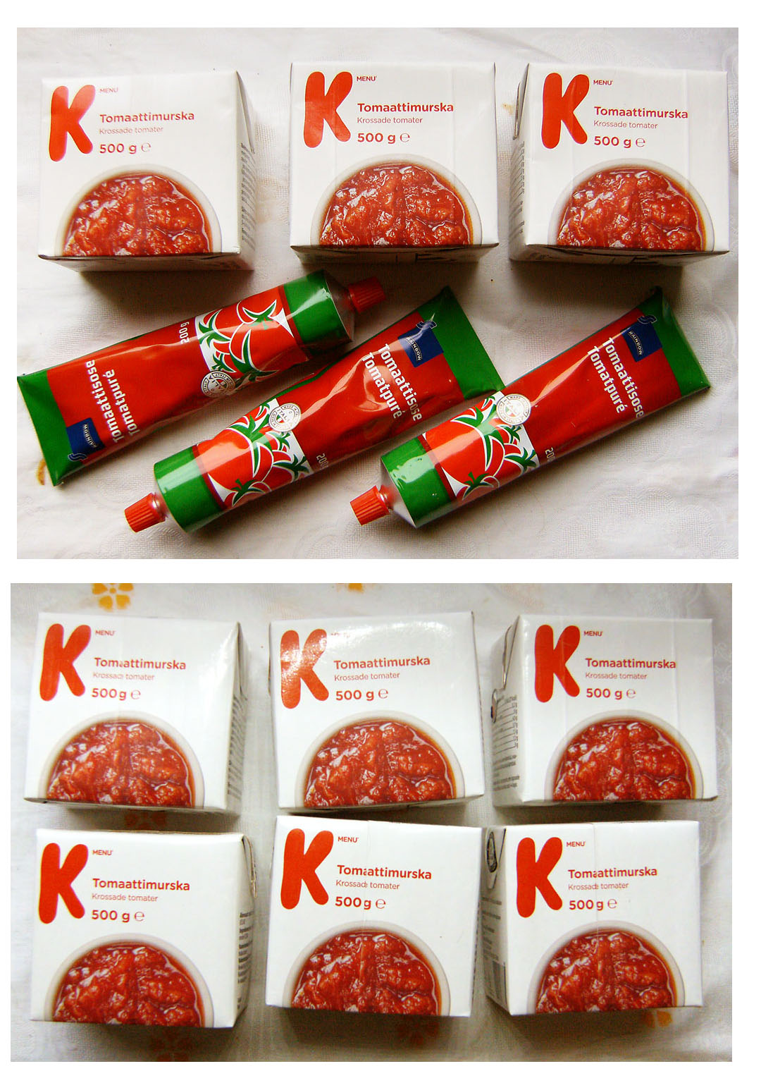 Vielä kun ostaa purkin kauramaitoa ja pari purkkia tomaattimurskaa 500g /kpl, siitä tulisi kaksi kiloa lisää. Vielä hedelmäkilo talvi-iltojen iloksi, niin alkaisi olla yli kymmenen kilon kauppakassi. Eikä tässä ole vielä edes mitään heräteostoksia, tai mitä ehkä sattuisi haluamaan.